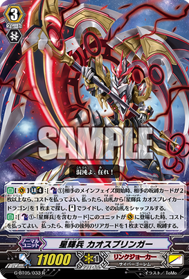 [CONT](VC/RC):During the battle that this unit attacks, if this unit is in raging devourer, your opponent cannot call grade 0 cards from his or her hand to (GC).Hopefully we will get more supports in G Technical Booster 1: The RECKLESS RAMPAGE soon enough and I'm really looking forward into these. Before I end this post, let watch a video of Cardfight!! Vanguard | Witch Queen of Transfiguration, Sinclair tips and card review.