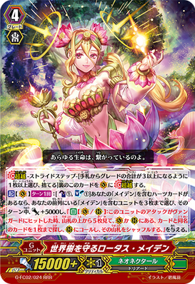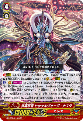[AUTO](VC):[Counter Blast (1)] During your turn, when your G unit Stride, you may pay the cost. If you do, choose up to two cards from your hand, call them to separate (RC), choose up to two of your rear-guards, and until end of turn, they get "[AUTO]:During your turn, when this unit is put into the drop zone from (RC), call this card to (RC).".Please be noted that the amount of units you retired with "Raging Devourer" can be important regarding other abilities that require checking for a specific number of units retired.