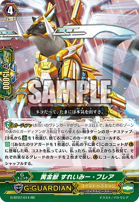 Well this is exciting for me to see that G Guardians are actually evolving and this time their Guardian skill are followed with their clan's ability. For example here Golden Beast, Sleimy Flare where when it is placed on Guardian Circle, you may superior call 2 cards from your top deck to assist it.