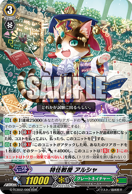 Do you see what I see? I can see people can abuse this unit because it works on either player battle phase, if you get the right call. All you need is a card effect that can makes Emeral return into your hand during the battle phase. I would suggest the G unit, PR♥ISM-Promise, Princess Labrador. Make sure you fully utilize the boost, whether give it to your Vanguard or your rear-guard.
